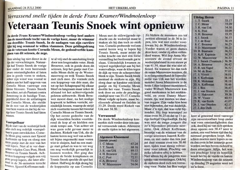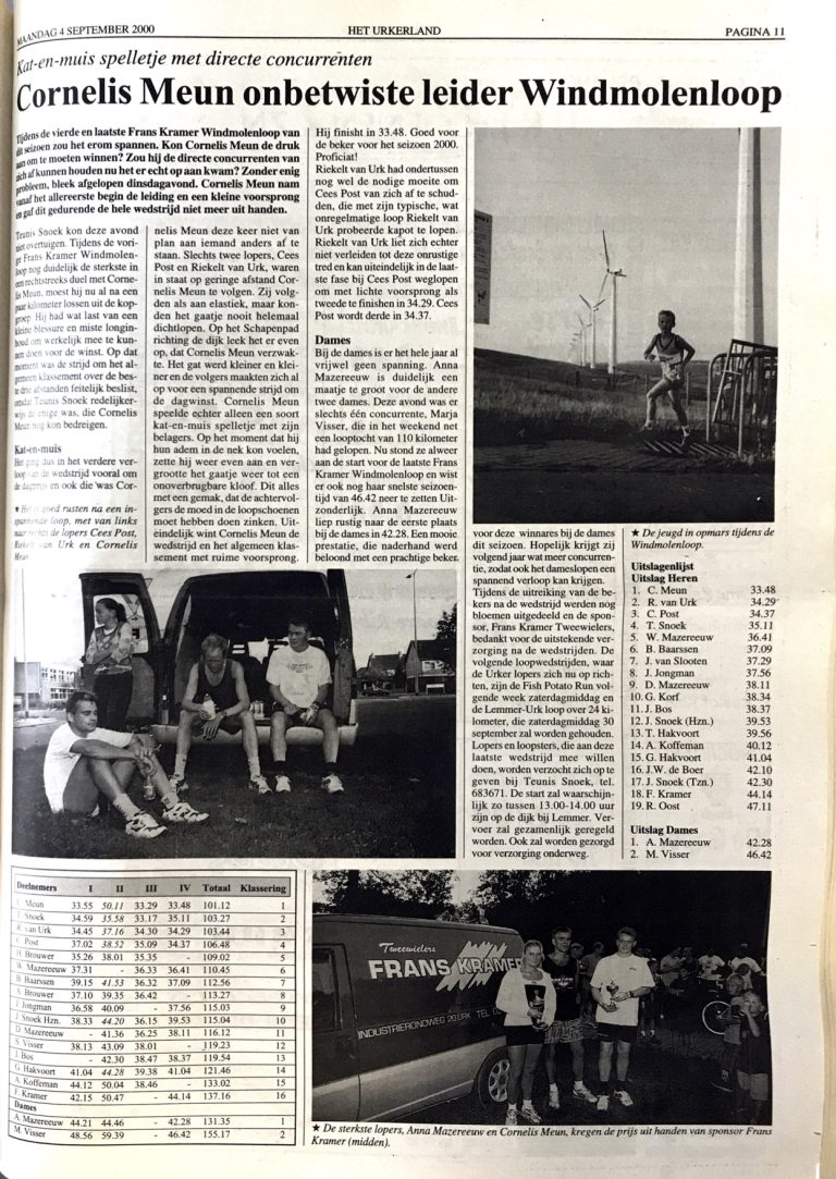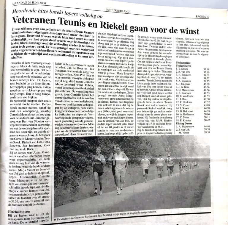Verslag windmolenloop Juni 2001 met uitslagen