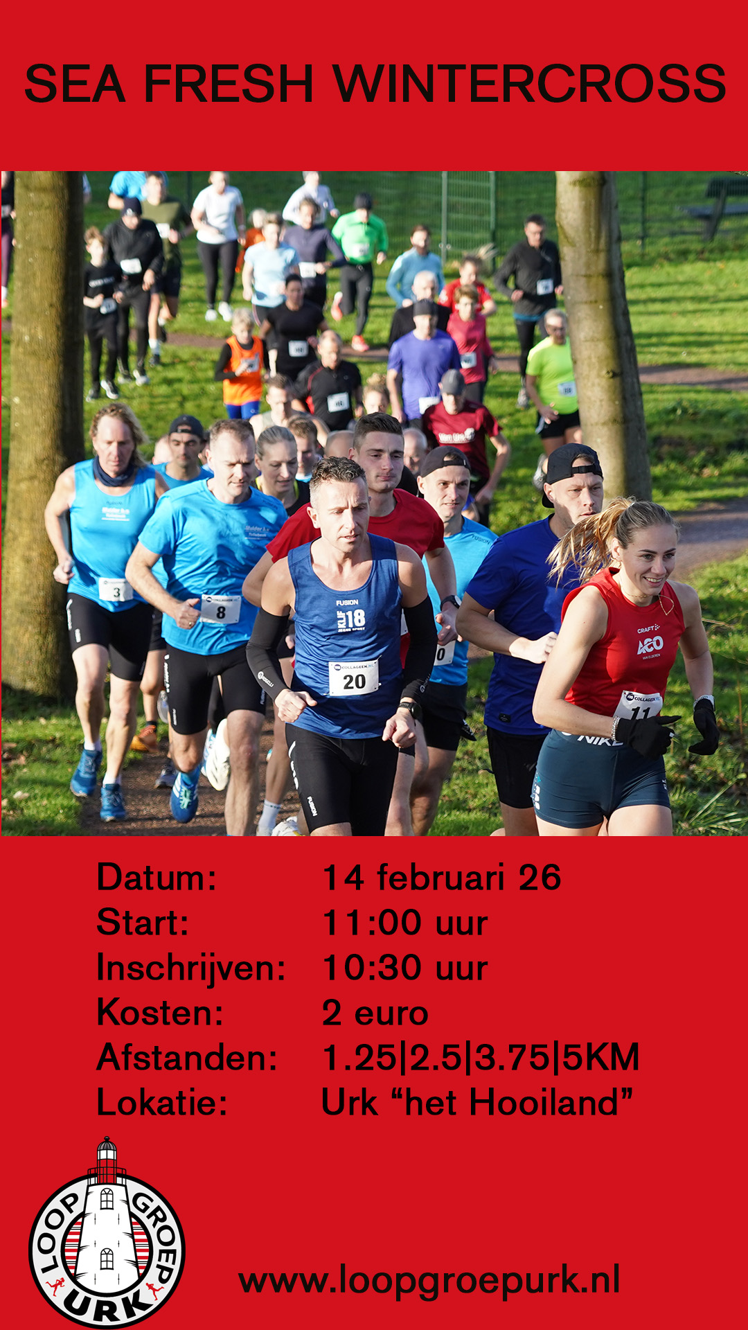 zaterdag 14 februari wordt er opnieuw de Sea Fresh wintercross georganiseerd. Deze cross is uitermate geschikt voor beginnende lopers en kinderen. Het parcours heeft een lengte van 1.250 meter per ronde. De lopers kunnen maximaal 4 rondenafleggen, wat neerkomt op een wedstrijd van 5 kilometer, maar het is ook mogelijk om minder ronden te lopen. Daarmee is deze cross een mooie opstap richting bijvoorbeeld de 12-dorpenloop in april.